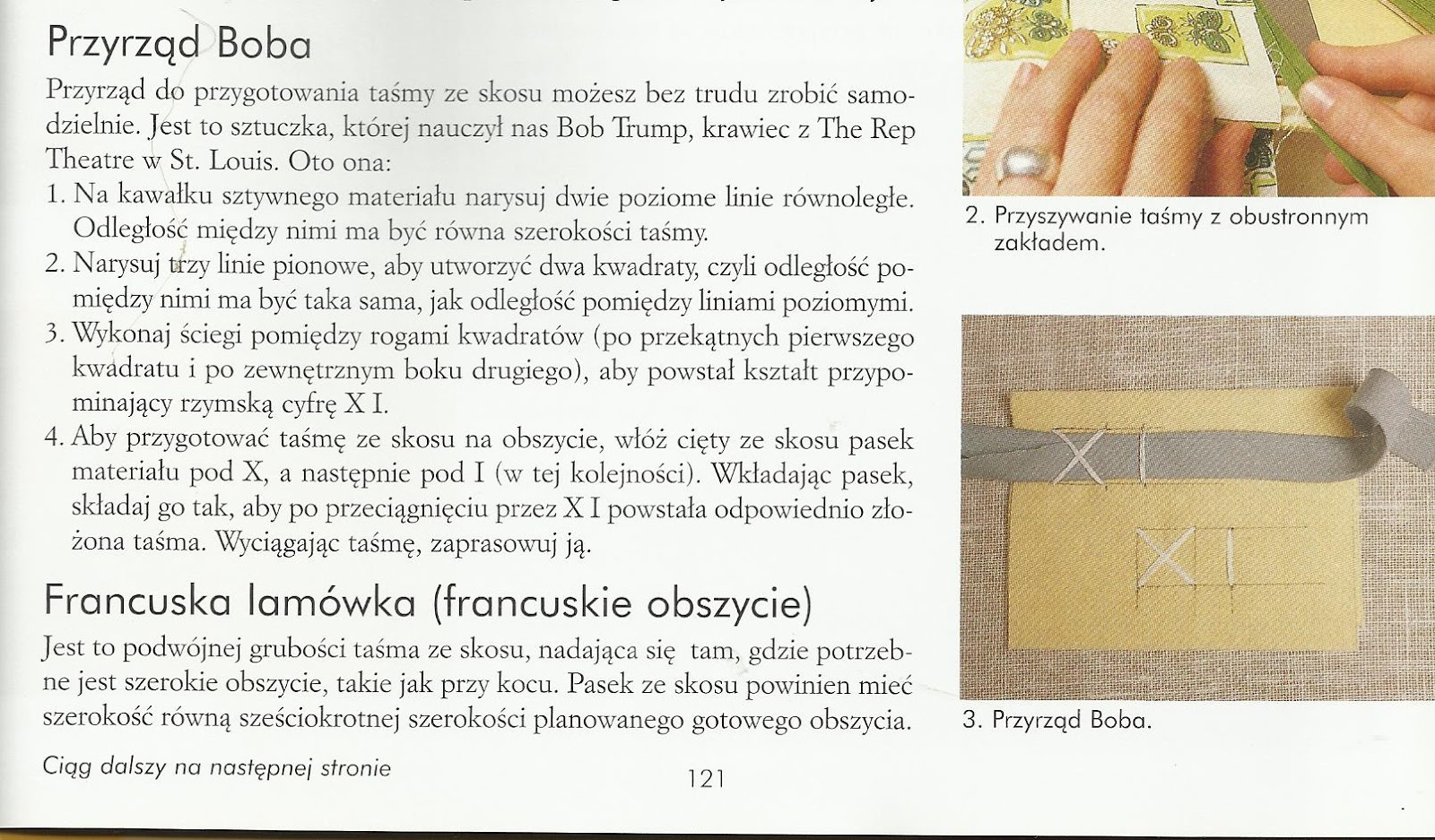 Wydaje mi się, że w książce jest błąd w tłumaczeniu w punkcie 3. Myślę, że raczej chodzi tu o przyszycie jakichś tasiemek czy sznureczków, a nie ścieg. Na zdjęciu widać o co chodzi :)